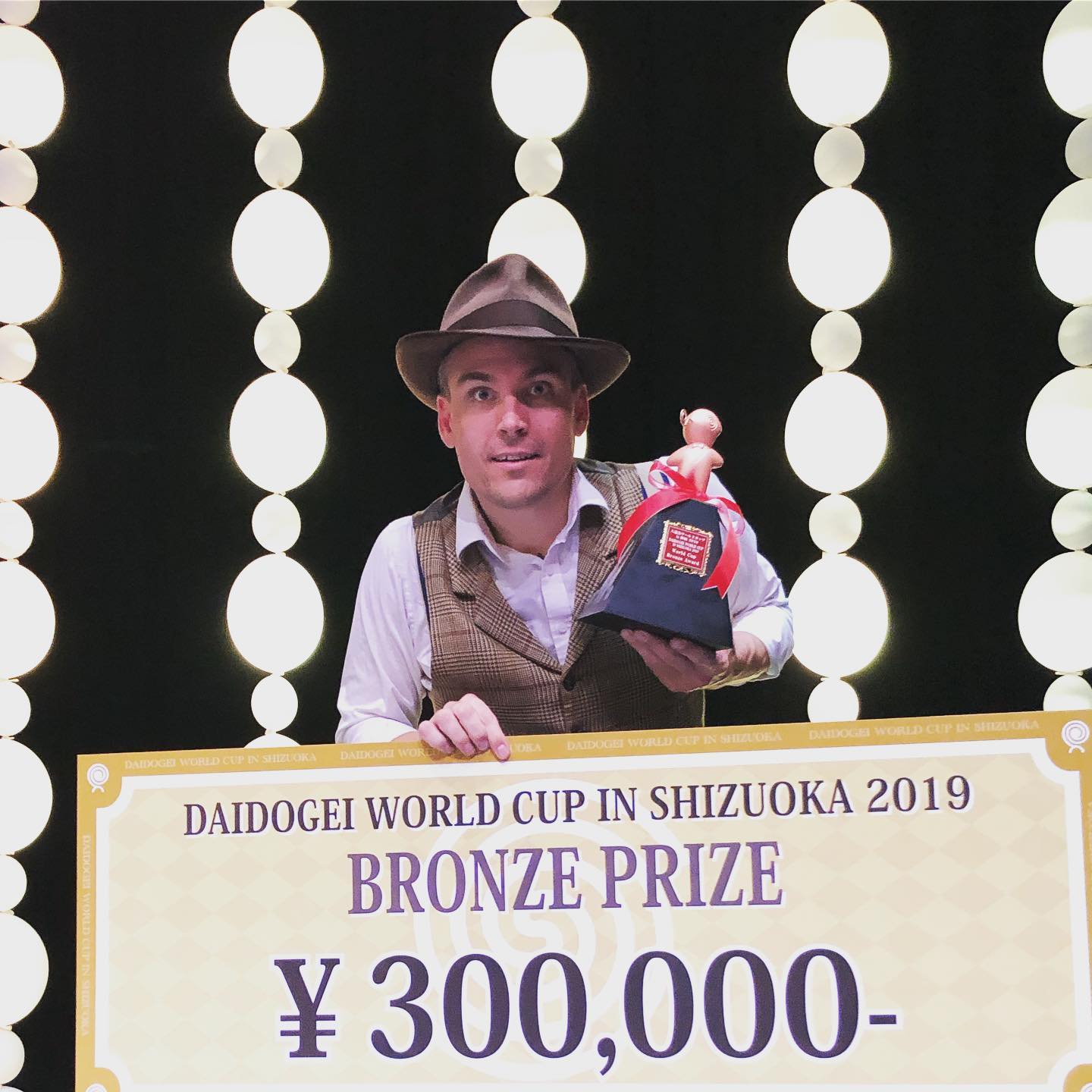 I won a big award at Daidogei World Cup Shizuoka which is an amazing prestigious festival with a long heritage of booking the greatest variety acts in the world. I won 300 000 yen and the Bronze Prize, beaten to the gold by a Canadian four-person circus troupe.